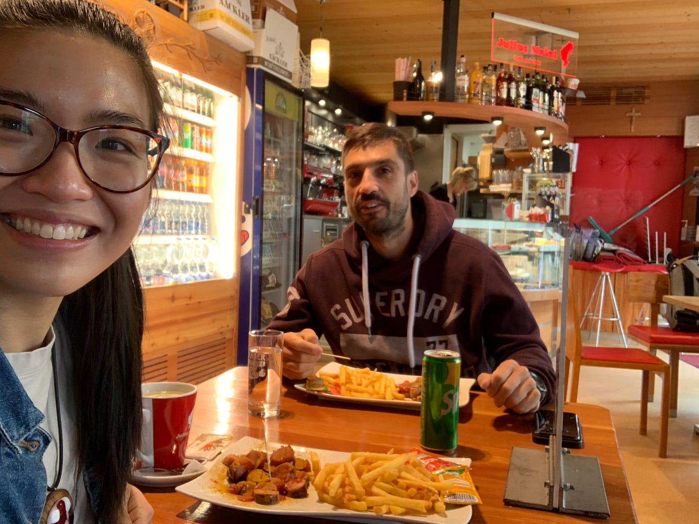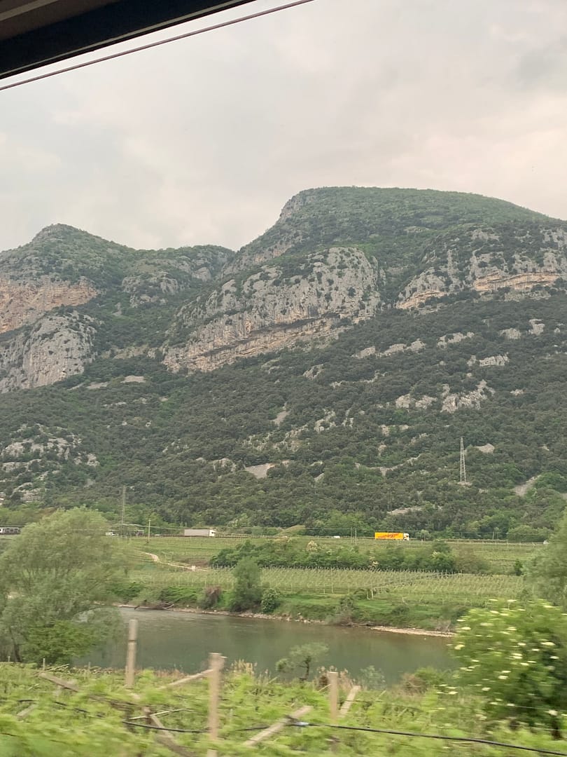 In total we stopped 3 times on the way up. When we arrived, it was in between rain, small rain, cloudy so we decided to eat currywurst haha! Eating something very German in Italy to buy some time in the hope the sun will shine when we’re done with it. After we ate, the sun did shine for a bit of time, I don’t see the famous Dolomites but I saw the glimpse of it and I’m happy 🙂 it did resemblance with the Toblerone mountain but it ain’t.