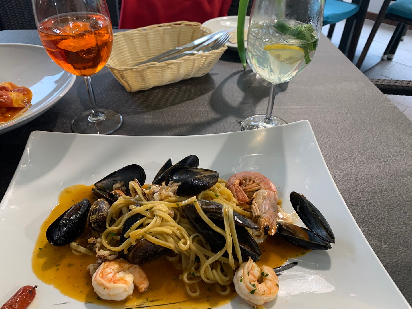 I used my last chance to eat another seafood pasta with Aperol spritz and this Aperol is as giant as my face haha!