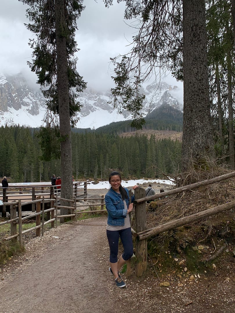 Weekend come, I requested Thomas to take me to see Dolomites, it is just to see not to hike (Corona survivor here, no sports allowed yet for now and some time in the future haha) Friend of Thomas gave him some tips about one place called Lago Carezza the good things about this lake is we can just park our car then walk to see the lake haha no hiking or any sort of long walks involved.
