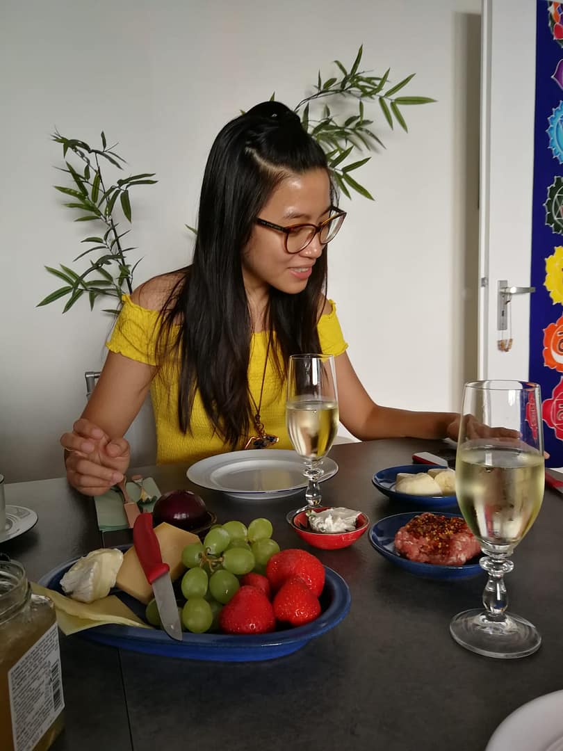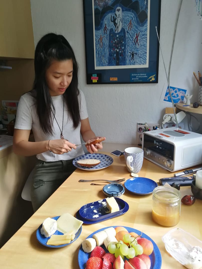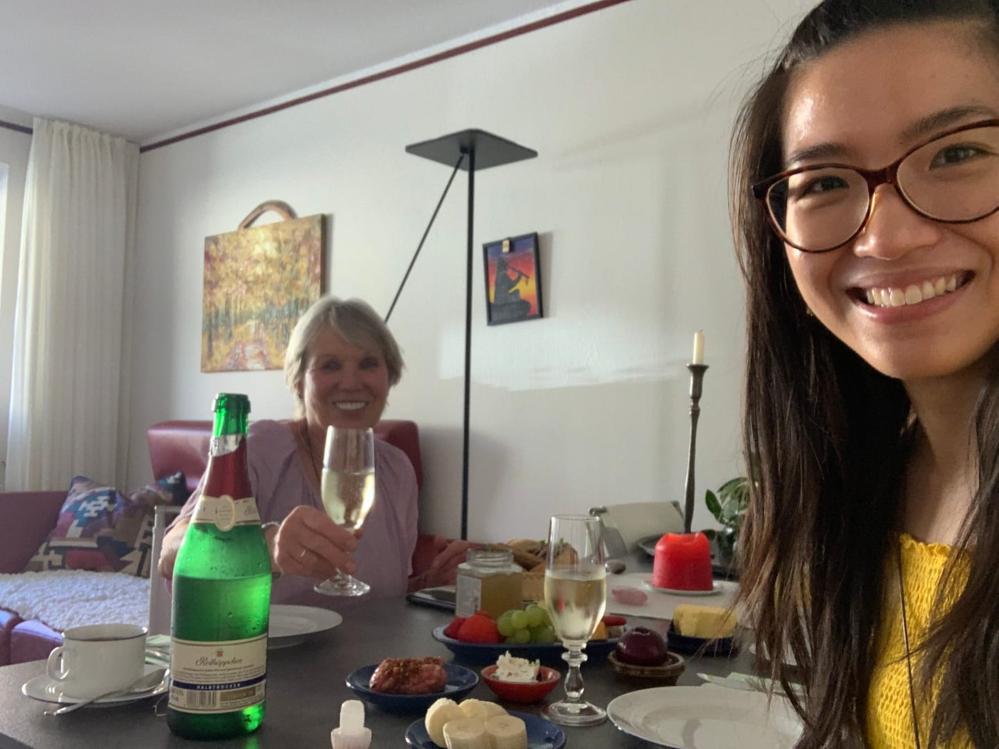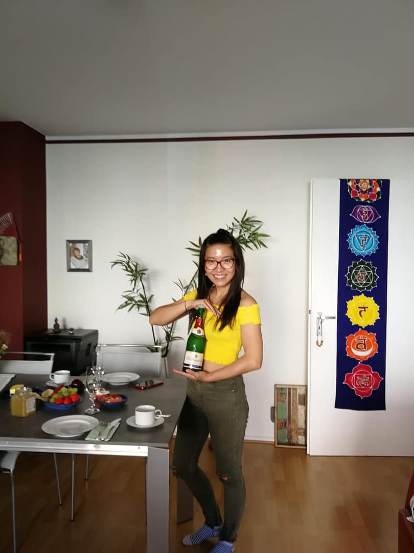 Managed myself to find Ingrit in Hannover Hbf, went straight home, had breakfast. Although she is a vegetarish, she bought me Mett brötchen as I requested haha. She said it was her first time to go to Metzgerei after so long 🙂 Danke für die Mühe…. plus Proseco.