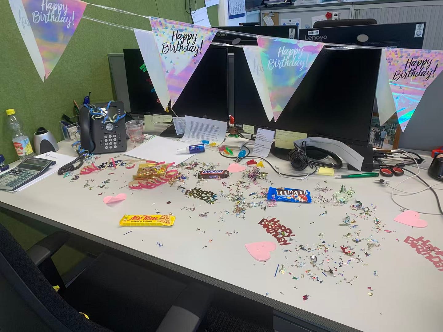We have a new decoration in our office for the Birthday Gelande! whhhaaattttttt, who bought this? I suspect no one, most probably we borrowed it from Milena’s Abteilung #Wir sind nachhaltig 😉