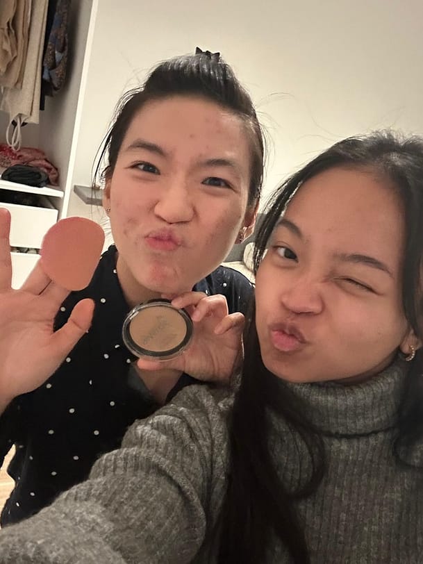 I was never putting make up on my face alone, therefore I need help from a jungle of make up section at DM. Super überfordert with all the Auswahl… Feliiiii rescue me pleaseeee. In the end I only bought a powder #Facepalm. We did some ‘test’ powder, divided my face into three sections, washed it with water + putting a moisturizer + putting sunscreen.