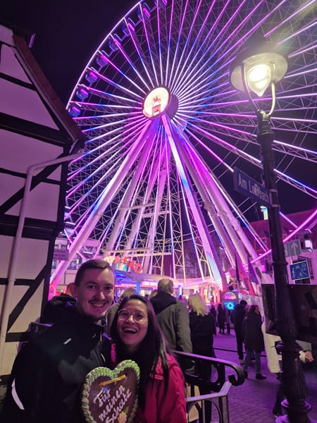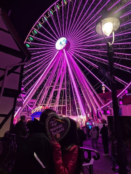 Back to Kirmes Topic 🙂 On a Saturday we rode das Riesenrad for the second time #Ritual. Honestly, I have less Angst than yesterday. Claudia believe “Höheangst kann man überwinden” you only need to do it more often. Apropos, we have a Gevelsberger 2024 Pin! Alina took it for us, she has a sharp eye to see where the bucket is! #Ess dä Kiärmis inne Gänge, schmeet ek mie inne Menge.