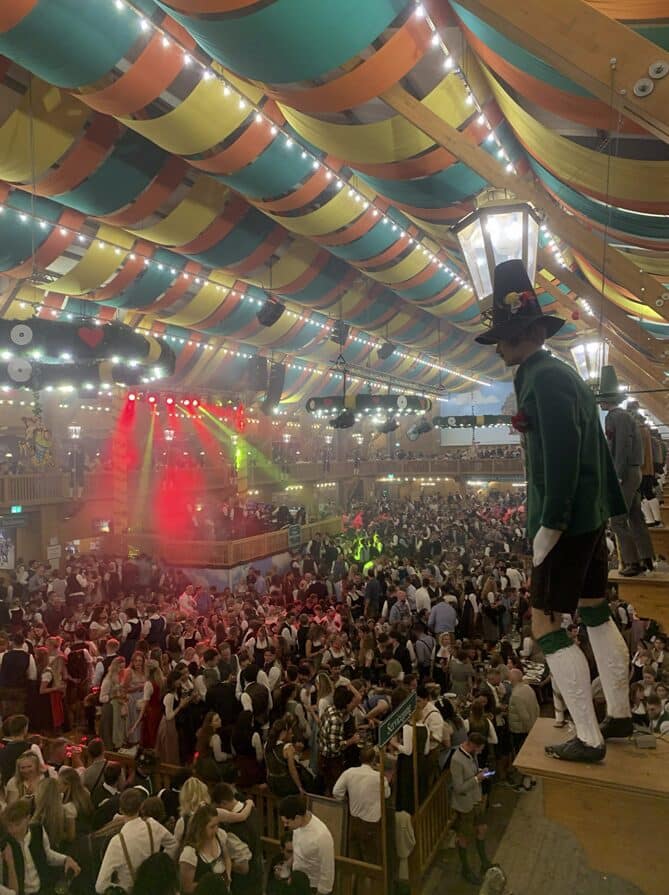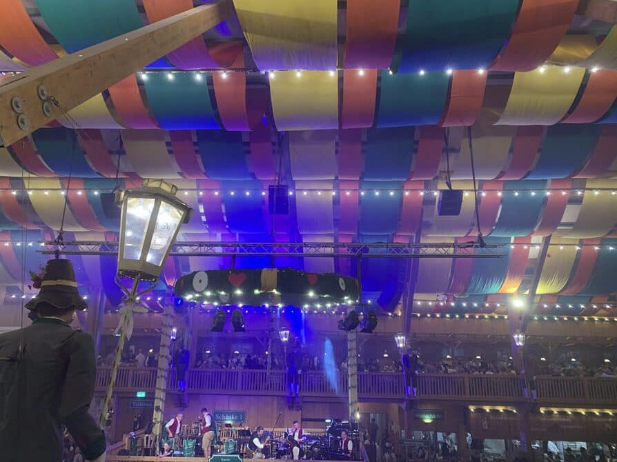 It helps to know some songs in German….or in English…. or in Italian haha Music in general. There are some songs which was played more often than the other called Ein Prosit. The crowd hype out of nowhere on “Hey Baby, I wanna know, if you’d be my girl” Followed by Hulapalu, Cordula Grün, Atemlos durch die Nacht, Skandal im Sperrbezirk, 99 Luftballons. Overjoyed they include Bella Ciao on the list too! Bella Ciao Ciao Ciao. What’s else? Gimme Gimme Gimme the man after midnight, then I can sleep in Badewanne. Claudia cut “in his Badewanne, not ours” 😉 On the Mamamia song, Thomas said “Marlyn, stand here, pointing at the bar / separator between the tables” Aye Aye! Going there! You can see from the video how by then I lost my balance. The final song in every tent #Gio’s word is forever and always Angels von Robbie William.