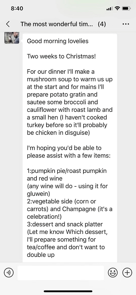 The menu was listed like two weeks before Christmas and I was a bit of a complicated person as I don’t eat lamb, fish, fatty pork so I messaged her privately about food restrictions that I can’t eat but I totally clueless that she still need some help on the option 1, 2 and 3 haha yeah I forget the word assist is the synonym of help # excuse my clueless, not native speaker here 🙂 overall, FYI I don’t read between the lines, either tell me exactly what to do or else I won’t feel it haha