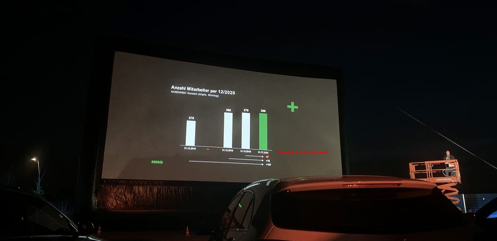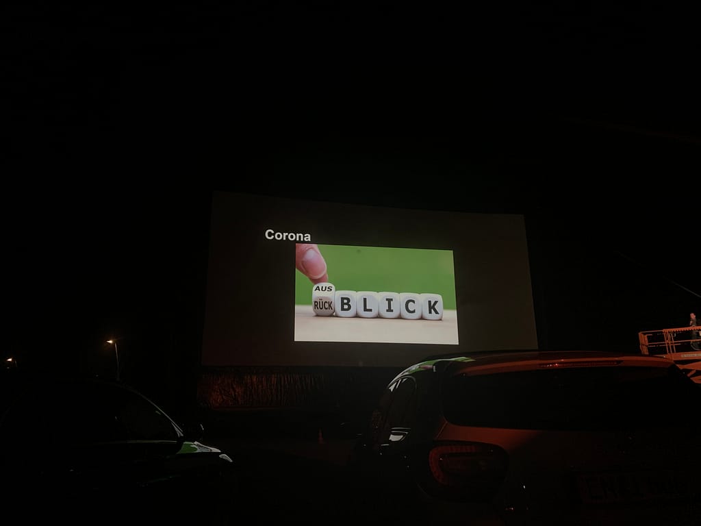 Beginning of March, there was an email from our board saying that NW will have an event called “Autokino” which means you watch a movie inside your car and they projected it on a big screen. I really think this is a very good idea because cinemas were and still closed until this moment. Actually this Autokino ist ganz alte Schule! existed since my parents generation mwahaha but no harm on bringing it back on 🙂 good stuff does exist longer!