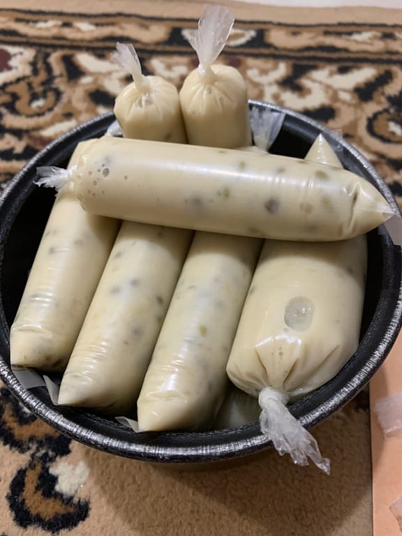 While me and my mom on the kitchen making this pudding, my father was making his own “green bean ice” in the living room and watching Narcos at the same time. He looked the video on youtube and make it without considering how much it will be and he really made a lot and he said to himself perhaps he will be able to finish it all in upcoming 2 months.