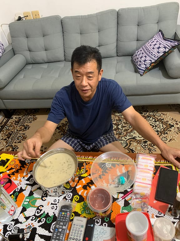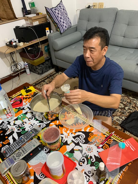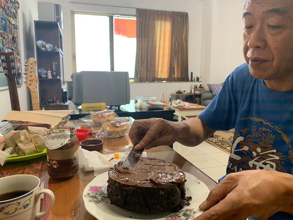 To my father’s surprise the cake turns out pretty well! He’s the son of a baker in our little village so he always think cake needs egg, a mixer and the list goes on and on an on. Well, daddy now it isn’t! haha