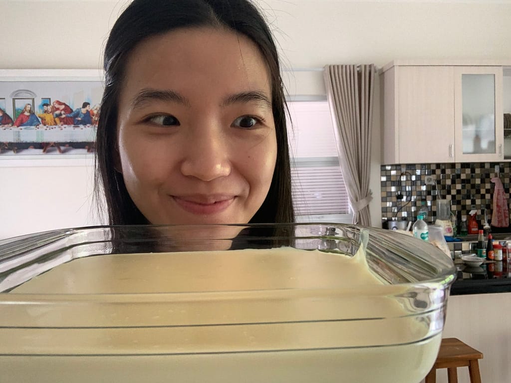 and it’s ready! hihihi well not ready ready but semi-ready as we need to wait for it to be a bit cool down then put it on the fridge. Usually I will only be able to eat it after half day of putting it there.