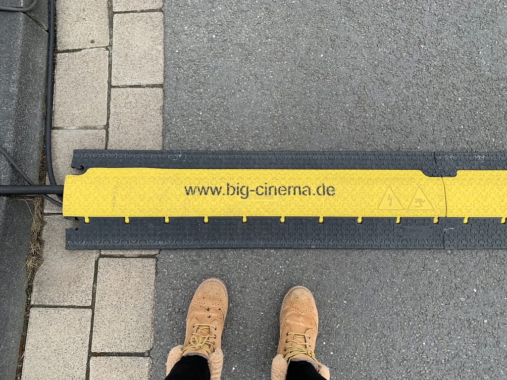 We chose the Wednesday 24th March and the film that we watched called Nightlife. Since I am not in home office period so I could see their preparation before! they put the big screen in our parking lot, bin so aufgeregt!