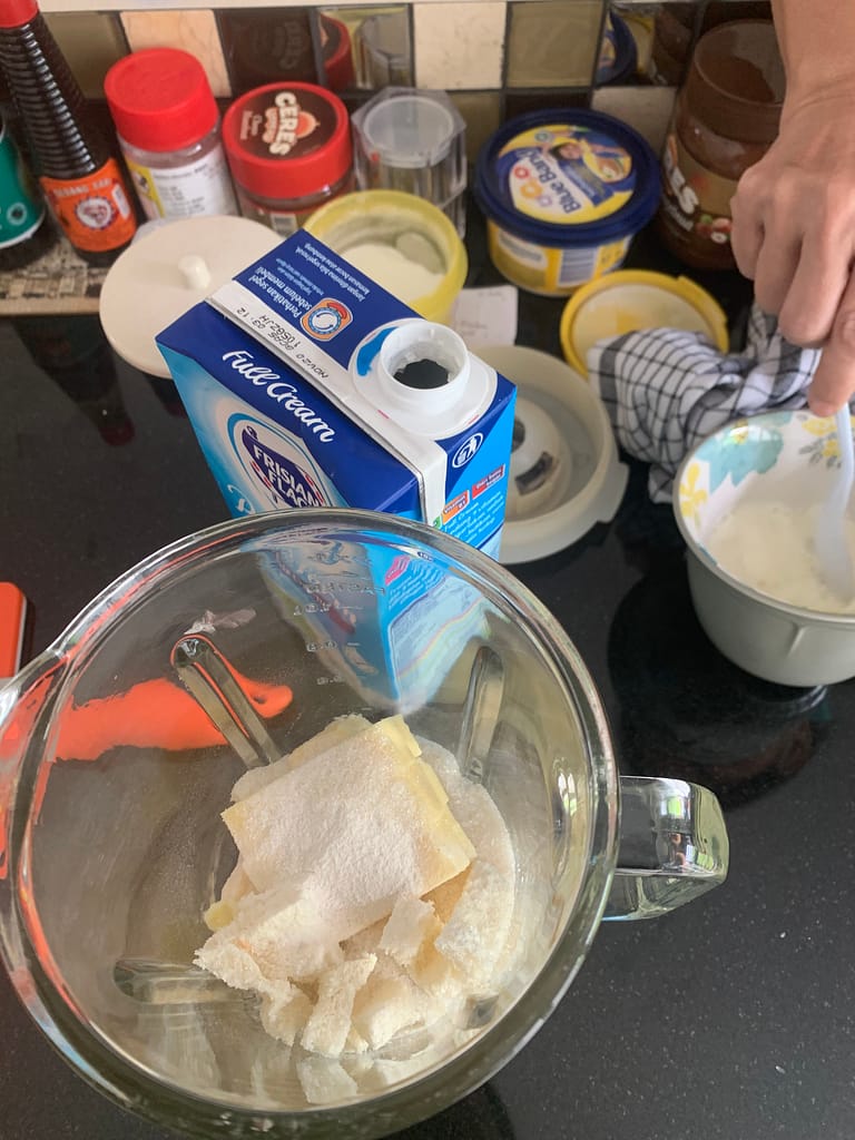 My mom was the one that doing video hunting of how to make it then she wrote down the recipes. My part was always cutting bread before put it on a blender and what happened with the left over bread? just eat it! don’t let it separated by its friends they need to be together on my tummy 😉